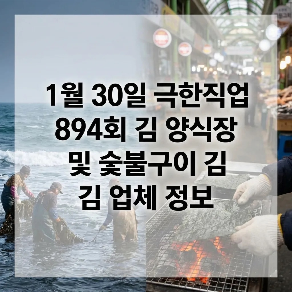 겨울철 우리네 식탁에서 빠질 수 없는 '검은 반도체', 김이 1년 중 가장 귀한 대목을 맞았습니다. 2026년 1월 30일 EBS 극한직업 894회에서는 영하의 추위를 뚫고 바다에서 김을 수확하는 양식장 사람들과 뜨거운 불 앞에서 전통을 지키는 숯불구이 장인들의 치열한 현장을 담아냈습니다. 방송에 소개되어 화제가 된 인천 매일참숯김, 신안 호림이네, 진도보석김의 상세 위치와 택배 주문 정보를 안내해 드립니다.