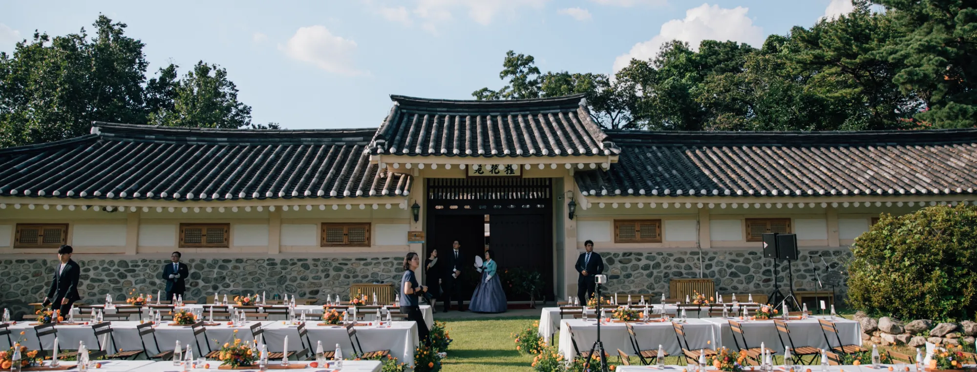 아니요. 대형 텐트를 설치해 야외 분위기를 유지하거나, 상황에 따라 한옥 내부 공간을 활용하는 실내 플랜으로 변경하여 진행합니다. 단, 텐트 설치 시 추가 비용이 발생할 수 있습니다.