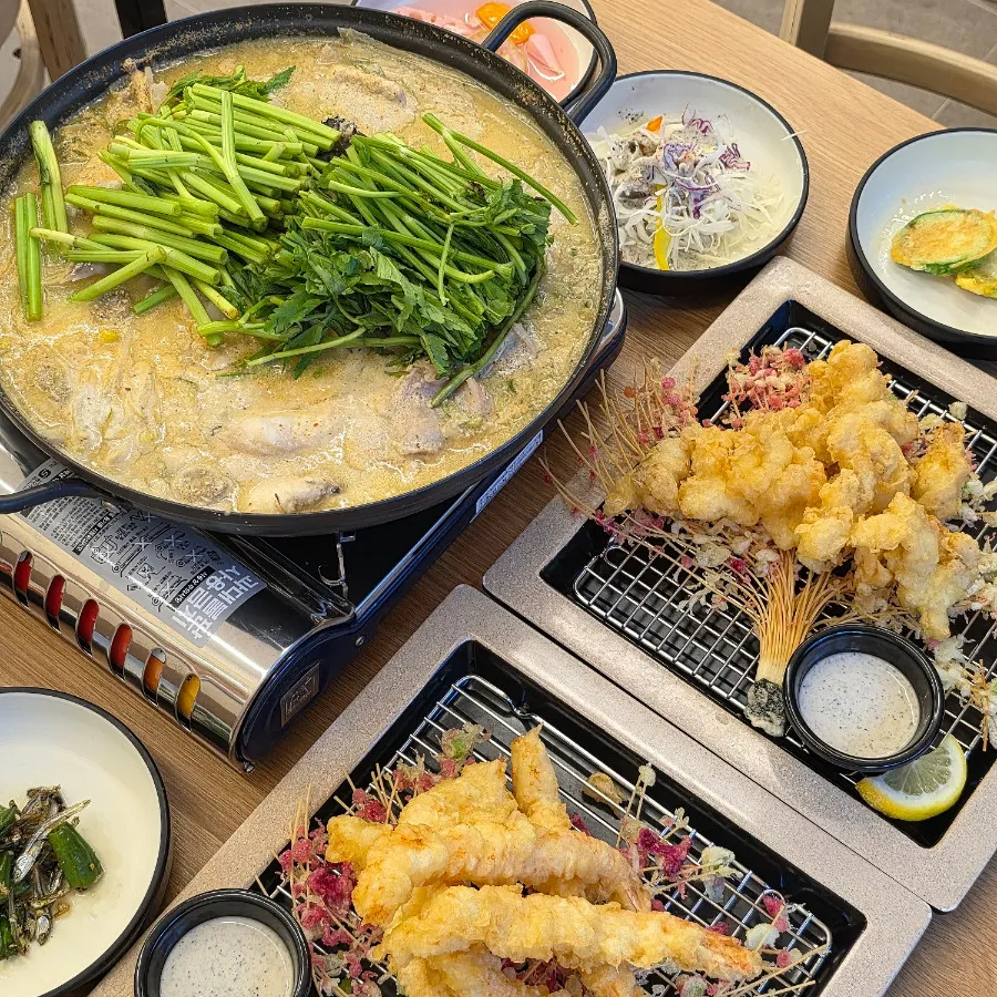 대표 메뉴인 생아귀 뚝배기(24,000원)는 맑은탕(지리)과 매운탕 중 선택할 수 있습니다. 생아귀 특유의 탄력 있는 식감과 사르르 녹는 부드러움을 동시에 느낄 수 있으며, 뚝배기에 담겨 나와 식사 끝까지 따뜻한 온기가 유지됩니다.
