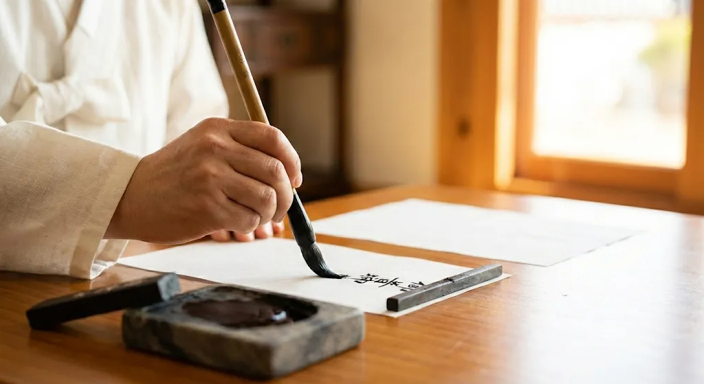 - 도구 선택: 붓이 없다면 검은색 붓펜이나 굵은 사인펜을 사용하되, 빨간색 펜은 절대 사용하지 않습니다.