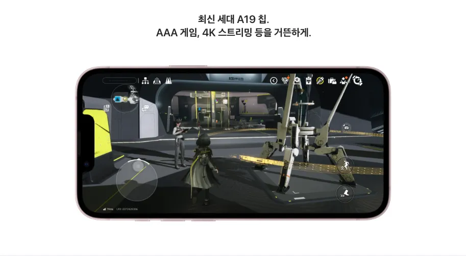 - 심장부터 다른 A19 칩셋: 최신 3nm 공정의 A19 칩을 탑재했습니다. 구형 모델 대비 CPU 속도가 2배 향상되었으며, 고사양 게임을 위한 레이 트레이싱까지 완벽 지원합니다.