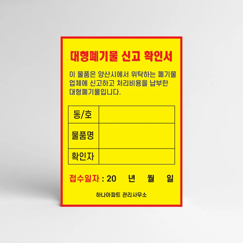 - 신고번호 기입법: 지자체 홈페이지에서 결제 후 생성된 [신고번호/품목/금액/날짜]를 종이에 적어 붙이기만 해도 수거됩니다.