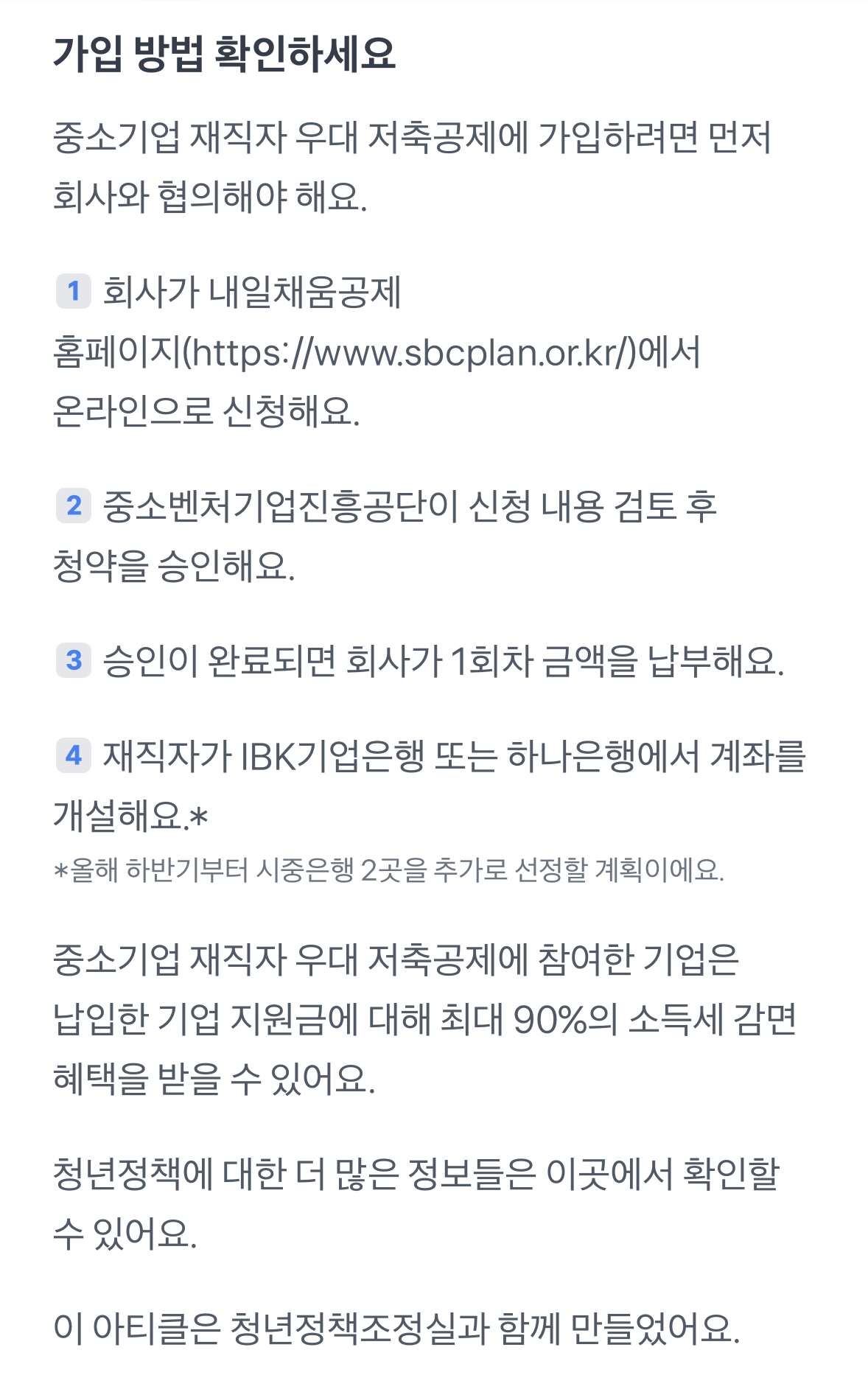 • 중소기업 재직자라면 고용형태와 상관 없이 가입 가능