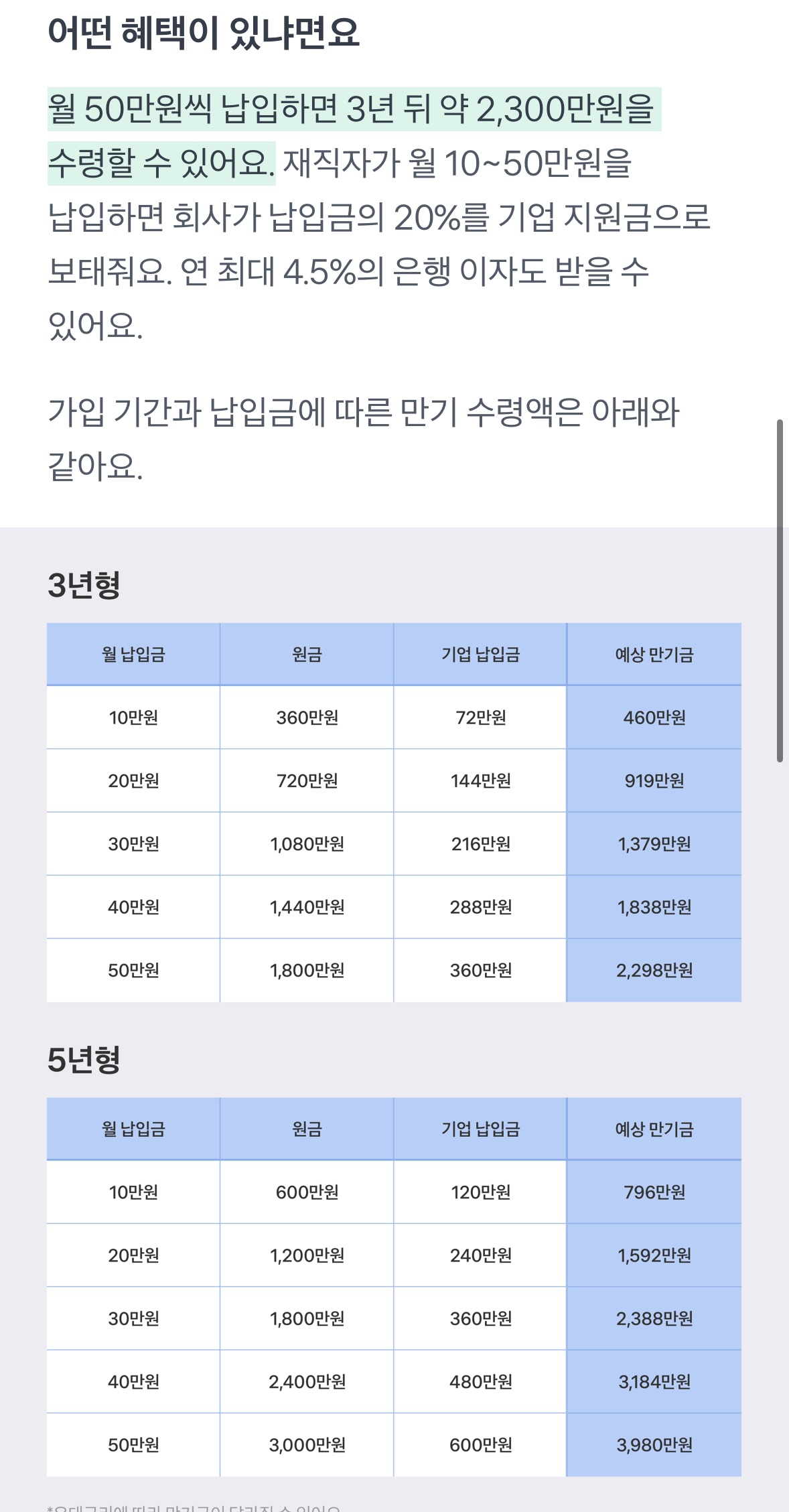 3년 또는 5년 뒤 꽤 큰 목돈을 만들 수 있는 구조다.