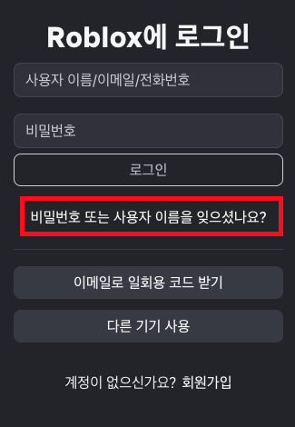 📌 1. 로블록스 비밀번호 찾기 (이메일·전화번호 있는 경우)
