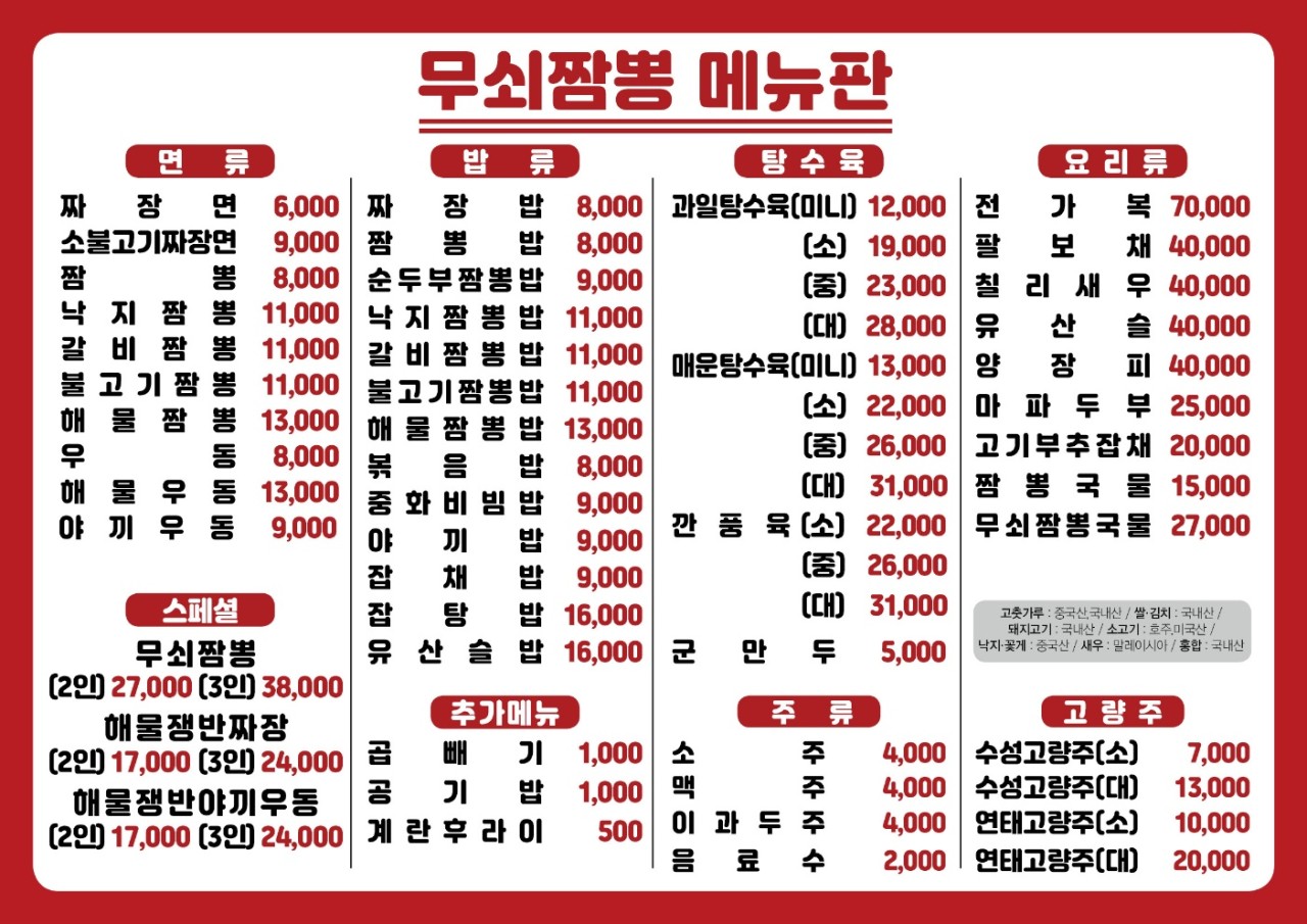 | 가게명 | 무쇠짬뽕 (대구 다사본점) |