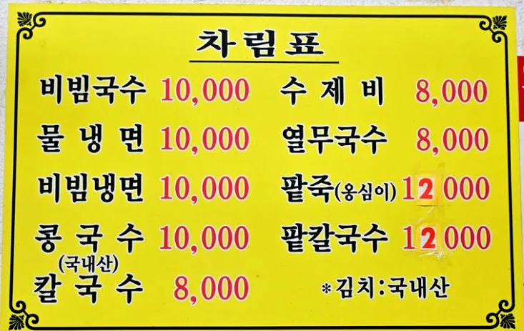 | 열무국수 / 콩국수 | 8,000원~10,000원 | 여름 시즌 별미 메뉴 |