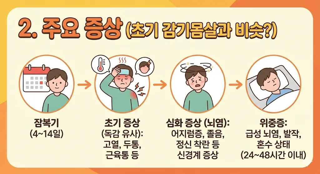 2. 주요 증상: 단순 감기에서 뇌염까지